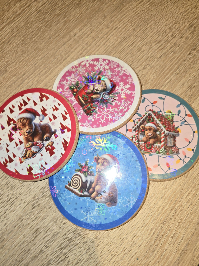 4 coaster box set. 4 random coasters from a variety of similar themed images. There are 20 different designs in total, each on a different background pattern.