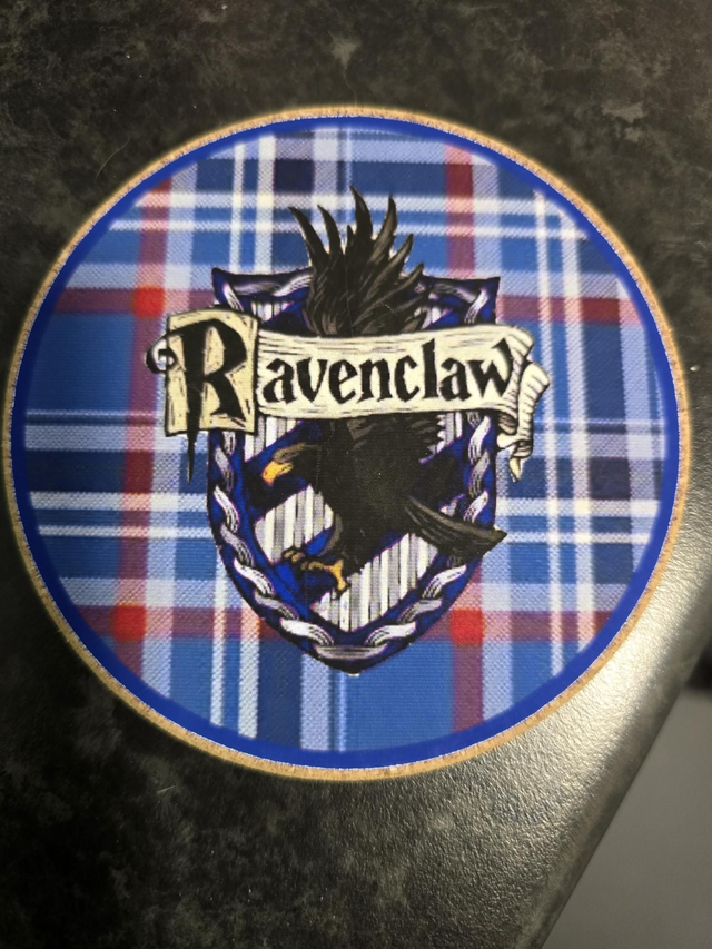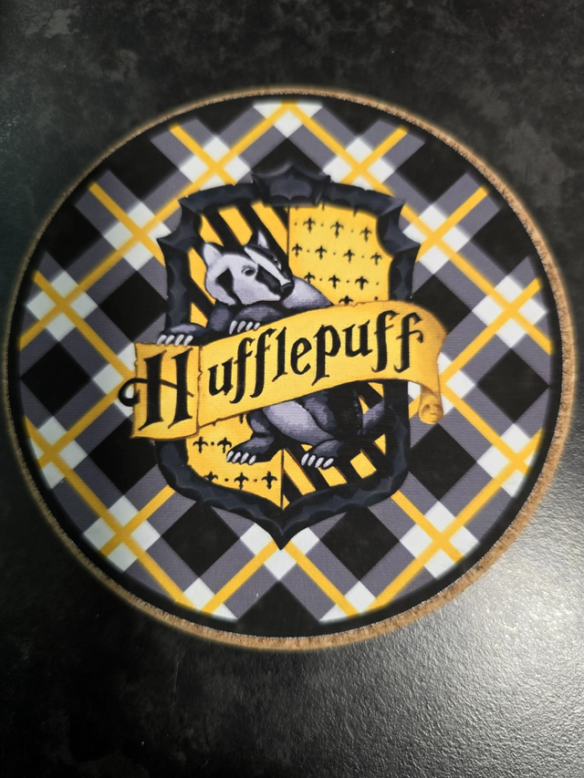 Hogwarts 4 coaster set featuring the crest from each of the 4 houses with a background with a tartan pattern in the colours of the house. Upon request I can make a house specific set of 4 coasters