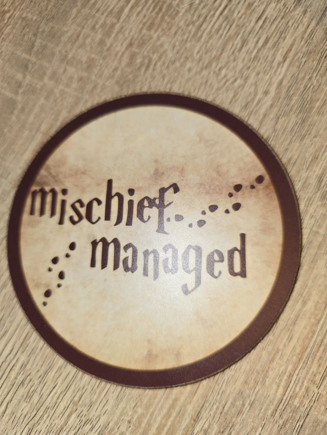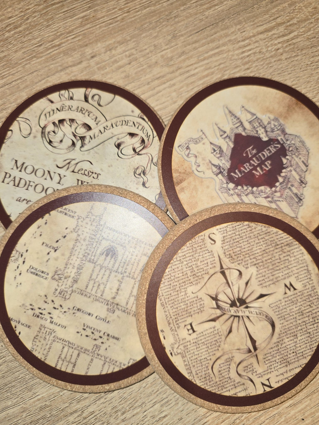 Random 4 coasters from various Marauder Map themed images. There are over 20 different images in this collection.